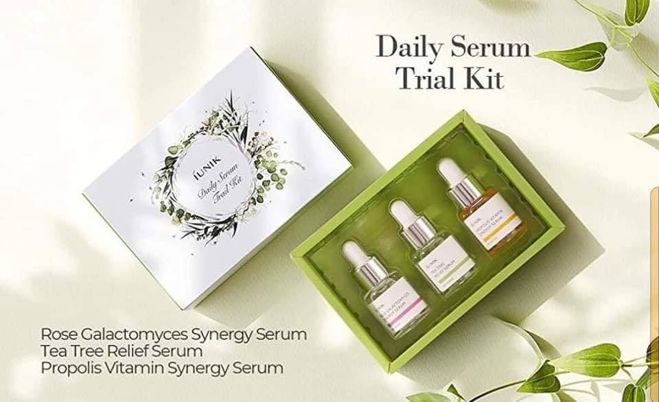 Conclusion: The iUNIK Daily Serum Trial Kit is an excellent way to explore the brandâs diverse range of serums. Each serum offers unique benefits, allowing users to address various skin concerns effectively. This trial kit is perfect for those new to iUNIK or looking to enhance their skincare routine with targeted treatments.